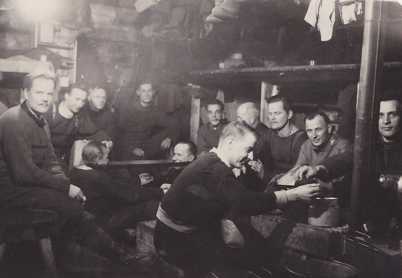 Korsuelämää sota-aikaan valokuvassa kolmas mies vasemmalla on Väinö Kontu.
