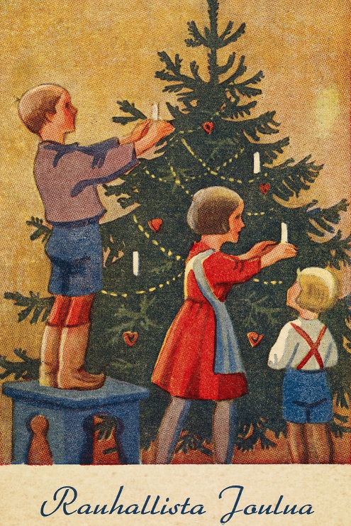 Aattona haettiin joulukuusi metsästä. Kuusi koristeltiin kynttilöillä ja paperipäällisillä kompiaisilla ja kultalangoilla. Myös eri maiden liput olivat koristeita ja latvassa komeili tähti.