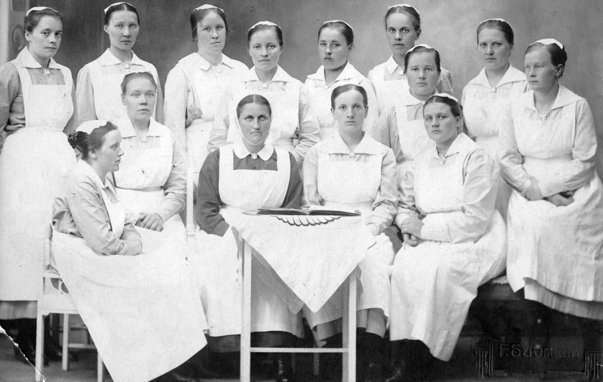 Vähän vastaava kuva löytyy isoäitini Liisa Tomperin albumista, siinä on kuvattuna myös tohtori Borg ja oppilaitoksen johtajatar sisar Liisa Peltoniemi.