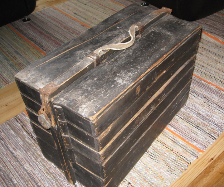 Mahtoiko laitasaarelaisten muistelema laukkukauppiaan puulaatikko olla tämä? Laatikko on kuulunut Pistojärveltä kotoisin olevalle Antti Ruottiselle. Laukku on nykyään hänen veljensä pojan omistuksessa ja hienosti säilytetty harvinaisuus. Tiedossani on, että vain yhdellä Oulussa asuvalla vienalaisella on sumtsa tallessa. Sumtsa on nahkainen selkäreppu, jota laukkukauppiaat kantoivat selässään pitkiä matkoja.