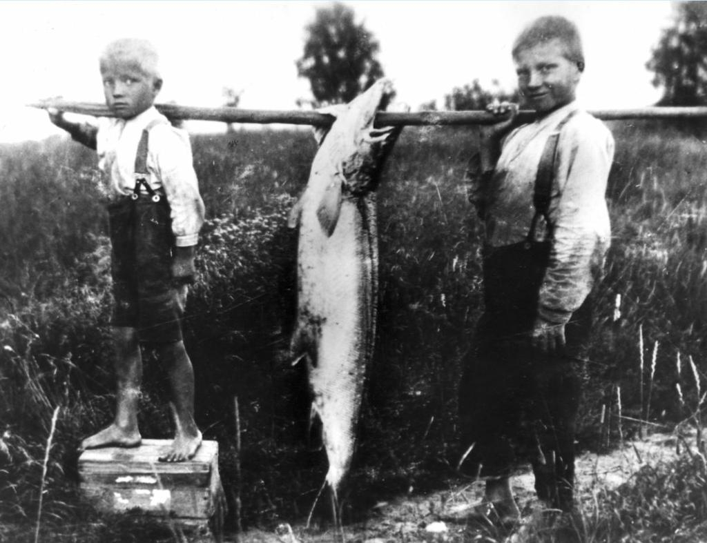 Vanha valokuva palauttaa Kesäniemen mieliin Oulujoen entisen kalarunsauden. Lohet hyppelivät pinnalle kuin kiviä olisi molskautettu veteen vähän väliä.