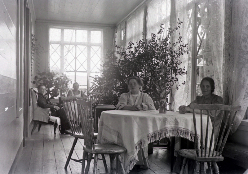 Myös huonekasveja Alma rakasti – niitä oli pappilassa paljon, kattoon saakka yltäviä puna- ja valkokukkaisia opuntia-kaktuksia sekä fiikuksia, joita oheisessakin kuvassa on.